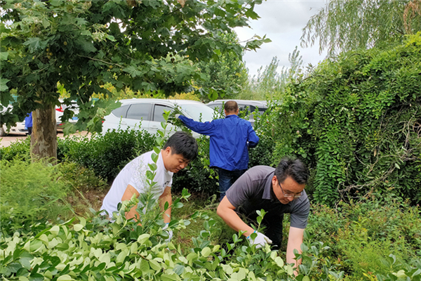 玻機公司以“我為群眾辦實事”為抓手,從小事做起,從細微之處抓起,推進黨史學習教育成果轉化為實實在在的舉措,做到讓職工看得見摸得著。8月19日下午,玻機公司開展了廠區義務大掃除活動。大掃除期間,公司領導們帶頭干,做表率,廣大職工積極主動,相互配合,廠區一派熱火朝天的景象。有的戴著勞保手套拔草,有的拿著耙子摟草,有的用綠籬機修剪綠植,有的推著兩輪車清運垃圾……經過近兩個小時的努力,綠化帶和停車位都變得干凈整潔、煥然一新,大家的臉上都洋溢著自豪的笑容。