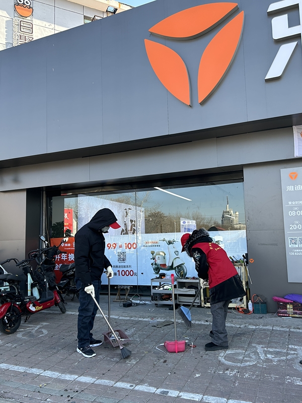 在大家的齊心協力下,經過兩個多小時的奮戰,沿街的輔路、商鋪門前空地及綠化帶被徹底清掃干凈。