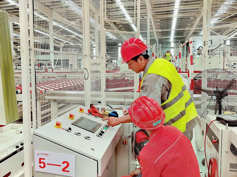 隨著冷端電氣控制調試進入最后階段,張部長帶領安裝人員高效完成了在線檢測、切割、堆垛、噴粉及深加工連線等系統的信號調試工作。目前,他正帶領團隊馬不停蹄地投入到七窯的調試工作中,為即將到來的出玻璃生產做最后的準備工作。張部長這種親力親為、精益求精的工作作風,為項目的順利推進提供了堅實保障。