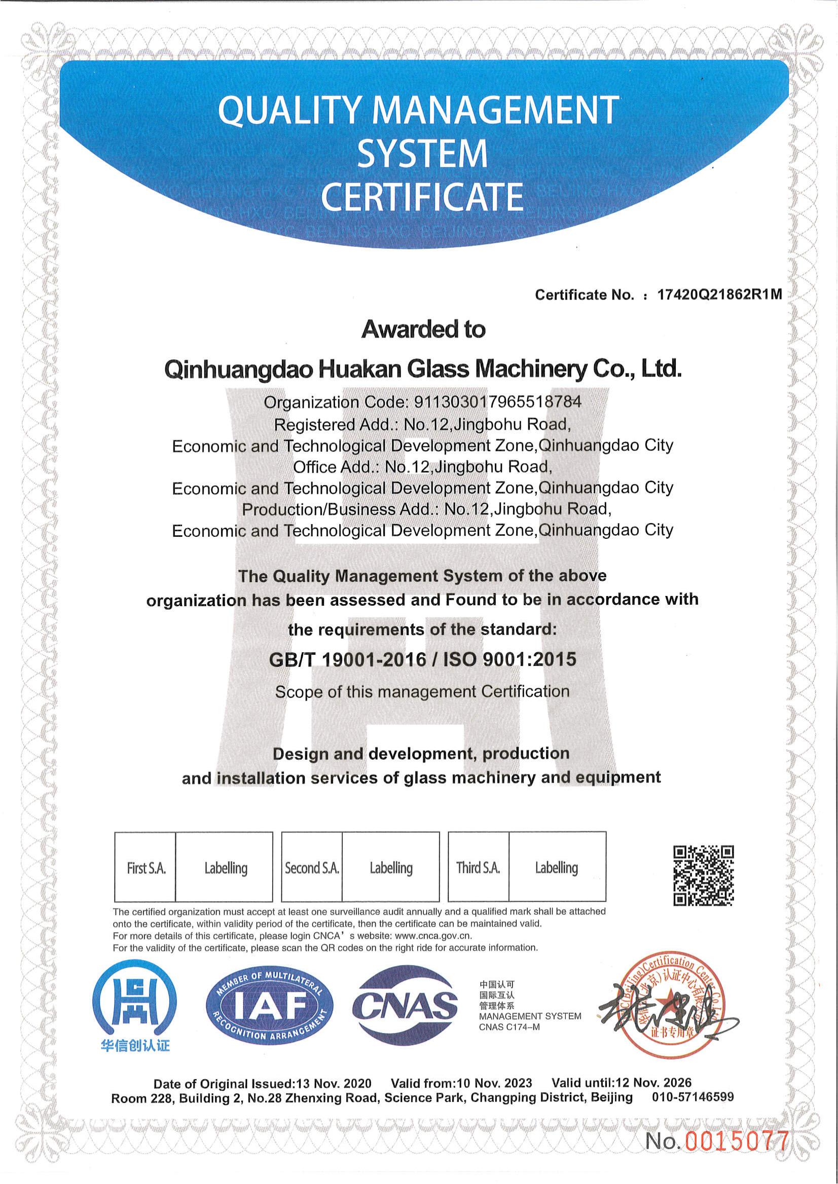 QUALITY MANAGEMENT SYSTEM CERTIFICATE